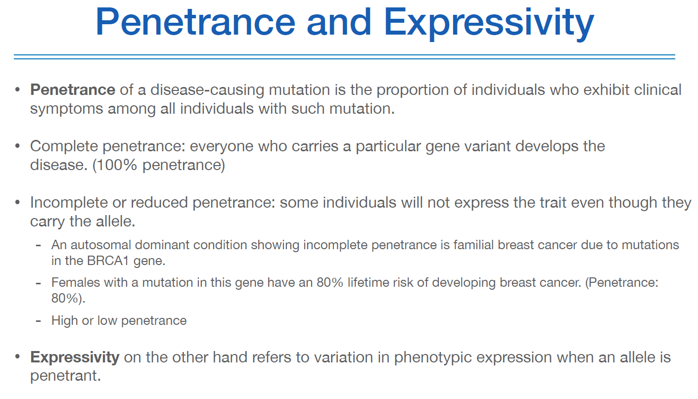 Penetrance(침투)라는 개념은 질환과 gene 사이의 관계의 정도를 나타내는 것이다.