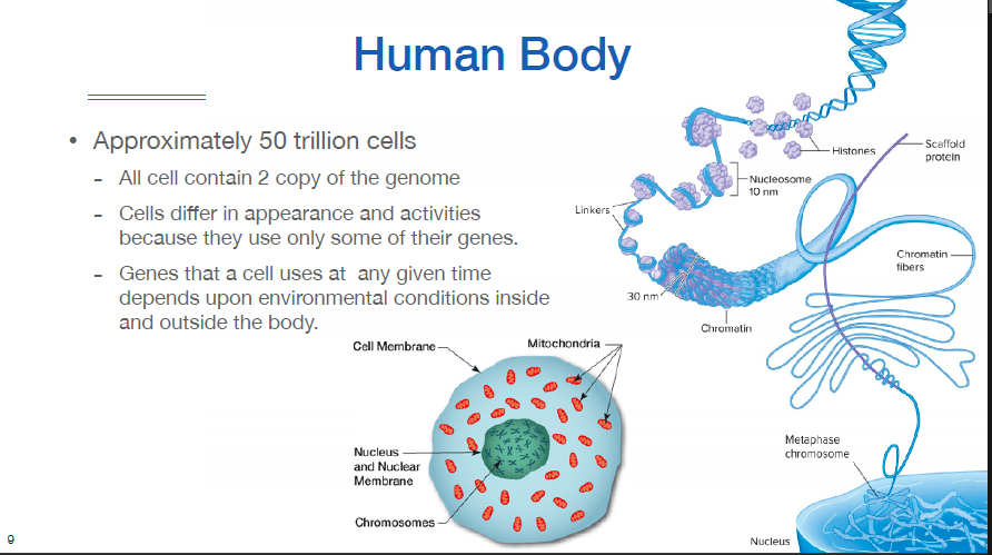 모든 세포는 genome 카피본을 2개씩 가지고 있고, 각각 세포는 그들이 보유한 유전자 중 오직 몇개의 것에 의해 그 형태와 활동이 달라진다.