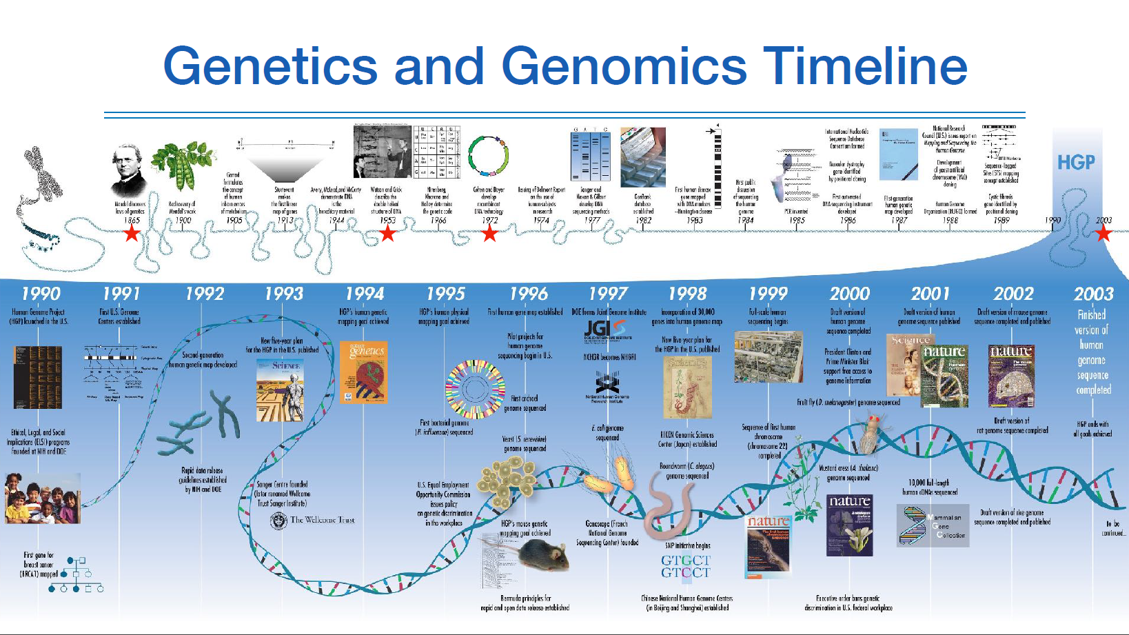 유전학 연구의 history를 보면, 1990~2003년 사이에 폭발적인 연구 성장이 이루어졌음을 알 수 있다.