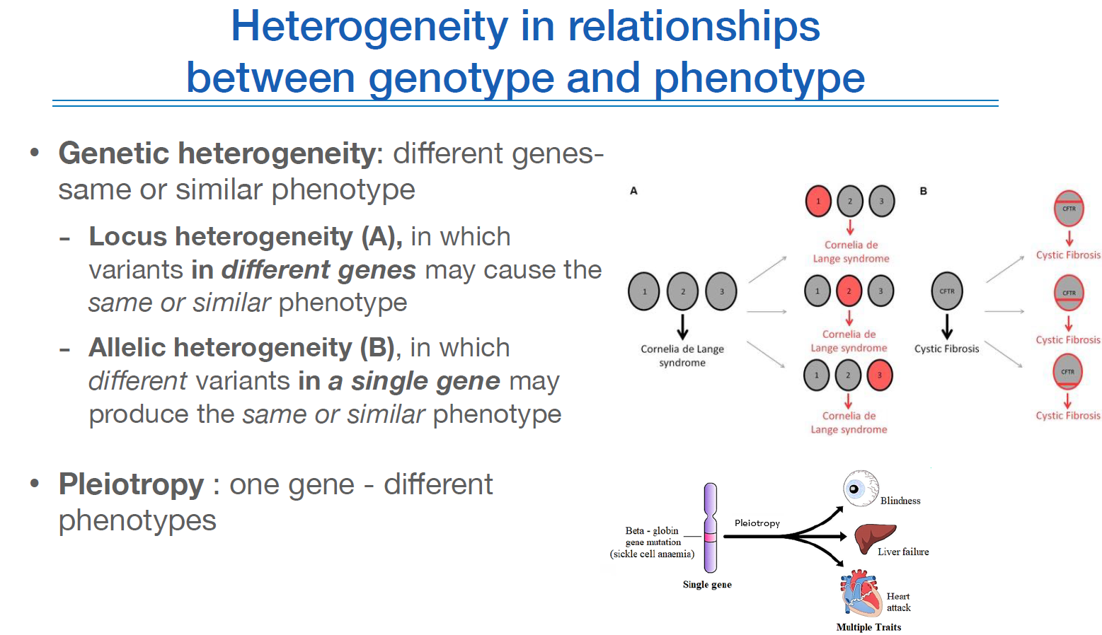 그 중 Locus heterogeneity (위 그림에서 우측 첫번째 fig.A)는 서로 다른 유전자들로 인해 같은 phenotype이 보이는것.