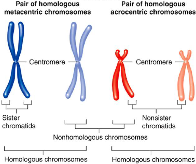 같은 성별의 염색체(즉, 엄마것으로부터 나온것)끼리는 sister chromatids라고 하고, 다른 성별끼리의 염색체는 nonsister chromatids라고 한다.