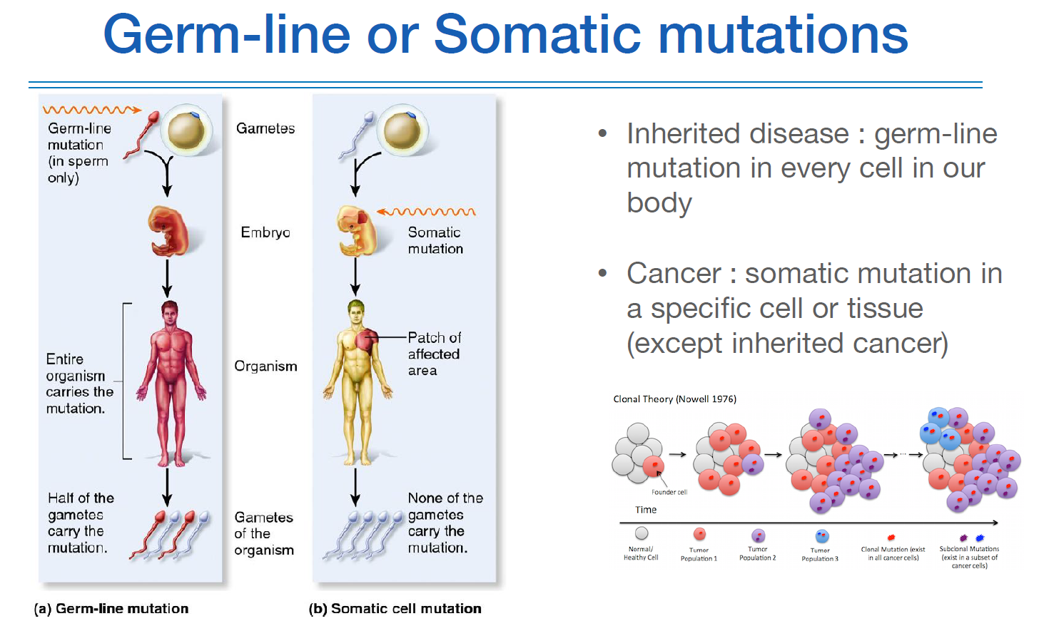 Germline mutation은 태어날때부터 타고난 변이이다. 대표적으로 유전질환이 있다.