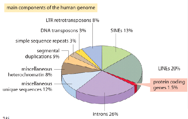 앞서 언급한 것처럼, genome (30억개의 염기서열) 중 실제 protein을 만드는데에 역할을 하는 염기서열은 1.5%정도이다.