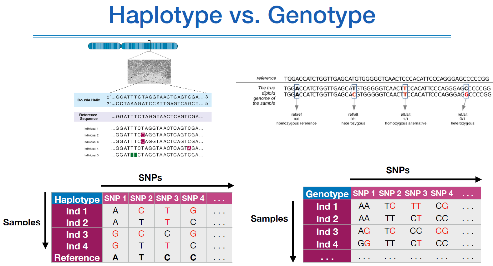 genotype은 diplotype(엄마것, 아빠것 모두) 두개(paternal and maternal)를 같이 읽어야한다.