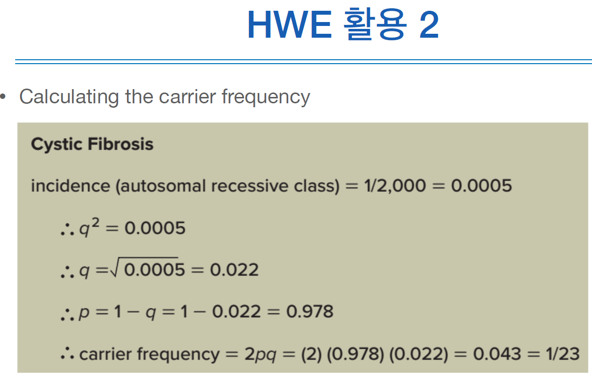 carrier frequency란 특성을 도미넌트하게 일으키는 유전자의 빈도이다.