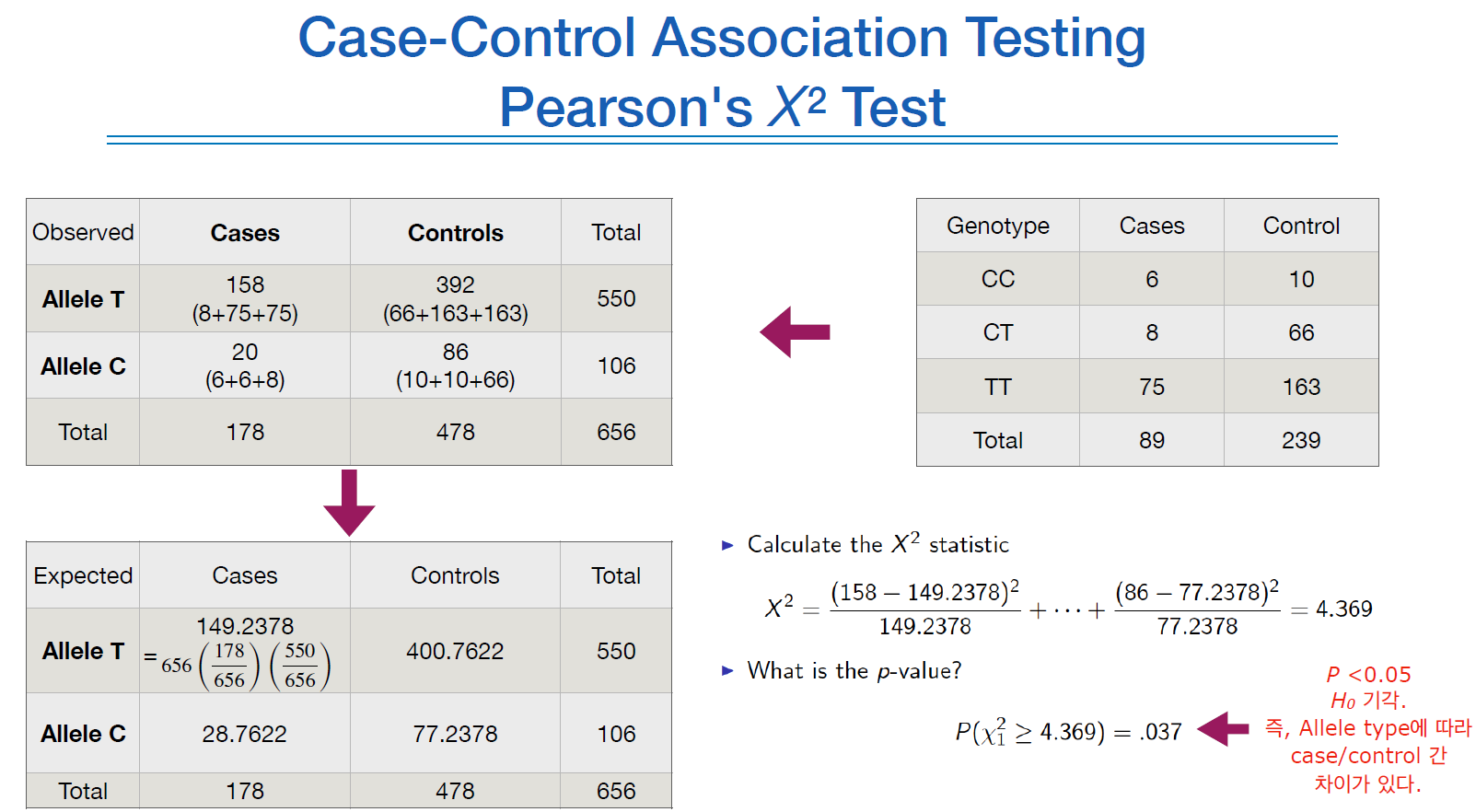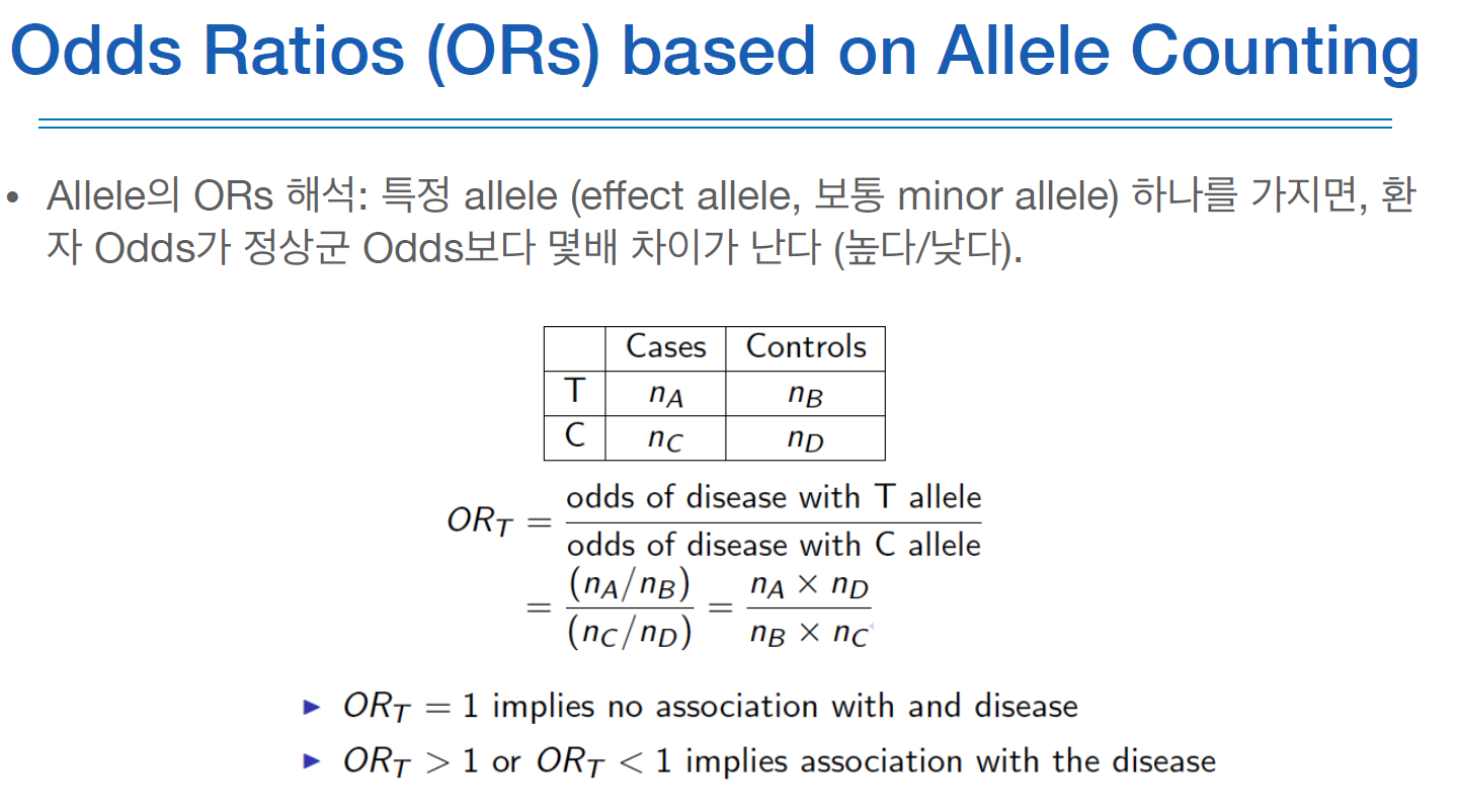 좌측 그림처럼 T 얼릴이 많을수록 phenotype의 경향성이 보일수록 T 얼릴이 해당 피노타입과 연관이 있다는 것이다.