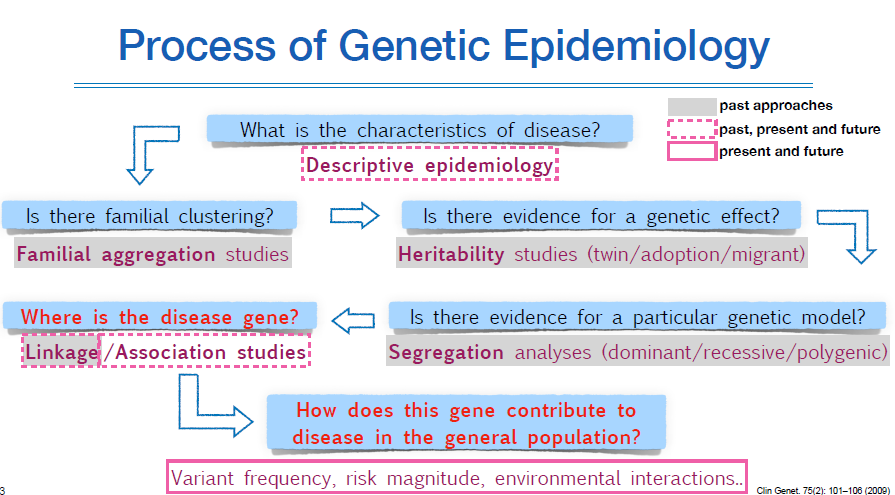 이번주 수업은 Study design in genetic epidemiology, 즉 유전역학 연구 설계 방법이다.