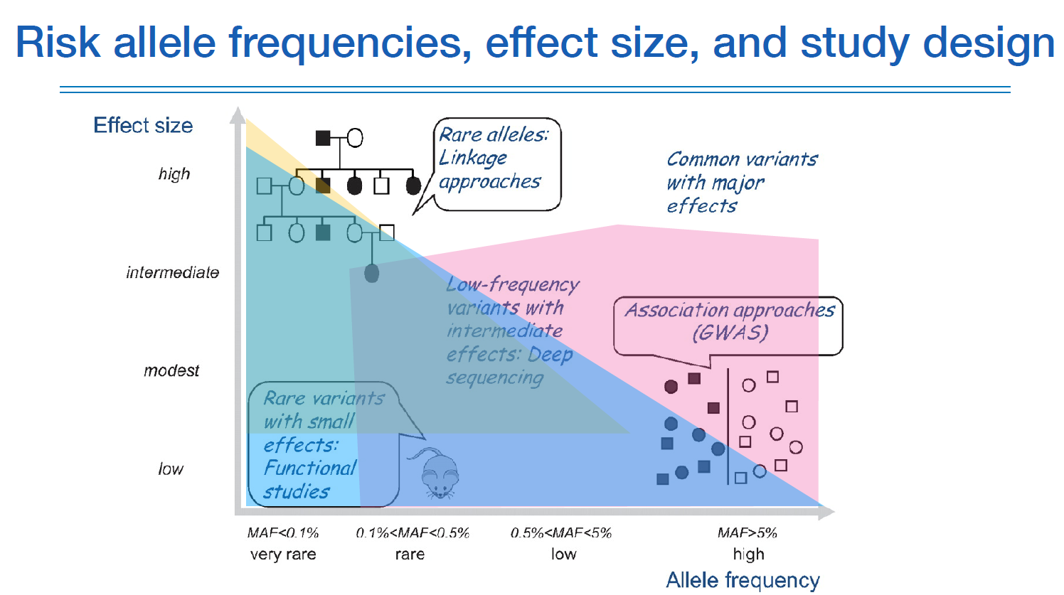 예전에는 effect size와 allele frequency에 따라 연구설계가 명확히 나뉘었지만, 최근에는 서로의 장단점을 보완해주는 방향으로 상호보완적으로 사용되고 있다.