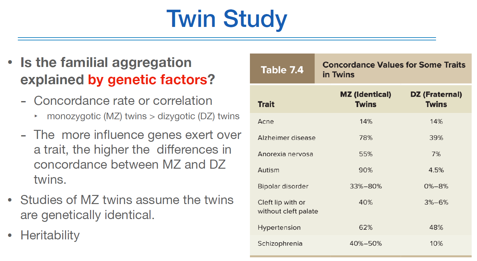 monozygotic (MZ) twin (일란성 쌍둥이)이 diztgotic (DZ) twin (이란성 쌍둥이) 보다 correlation이 더 높다.