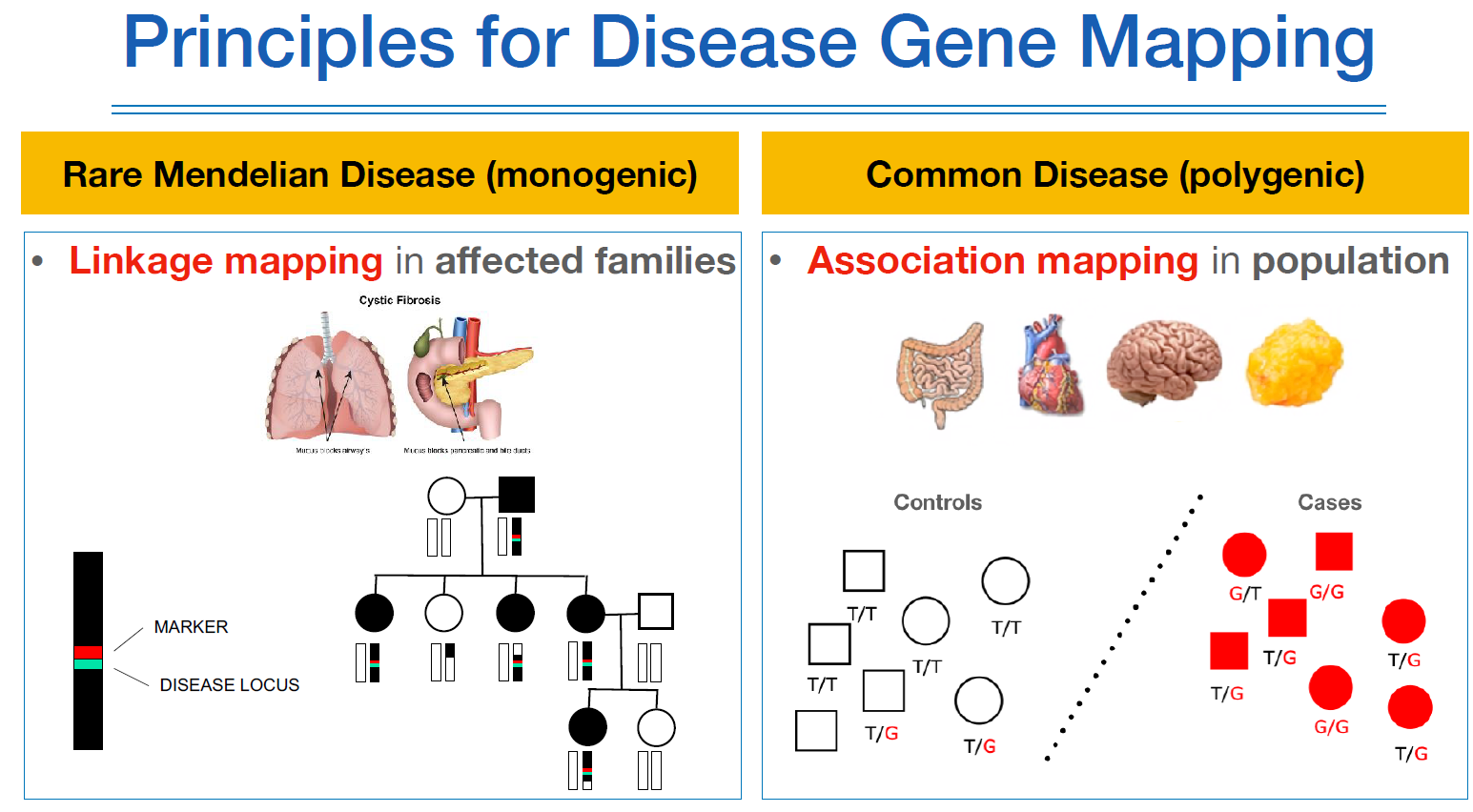 association mapping은 집단 연구로, polygenic한 질병을 찾는데 특화되어 있다.