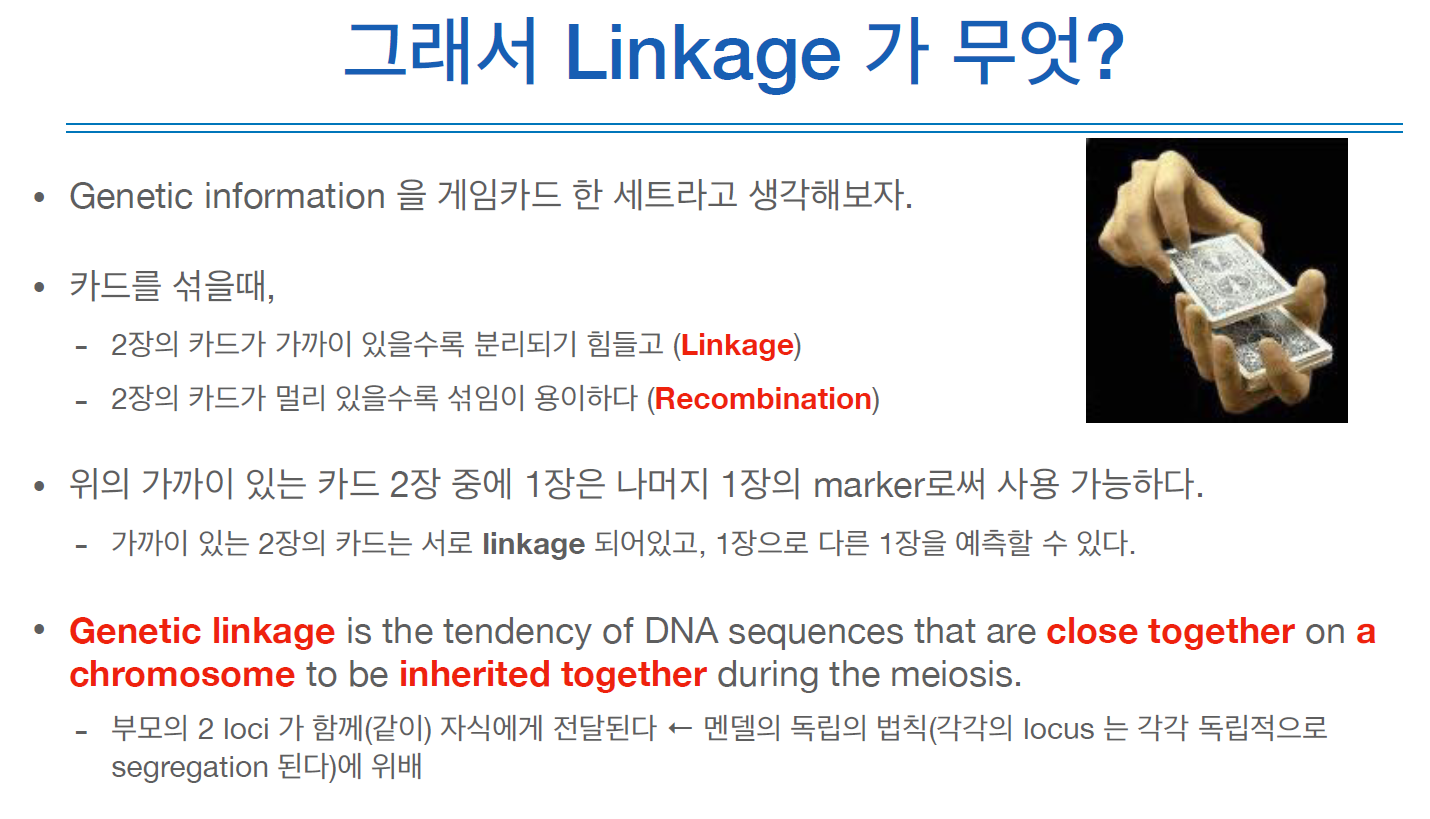그래서 멘델의 법칙은 각각의 locus는 각각 독립적으로 segregation 되는 것으로 생각했지만, 두 locus가 물리적으로 너무 가까운 경우 segregation이 안되는 것이다.