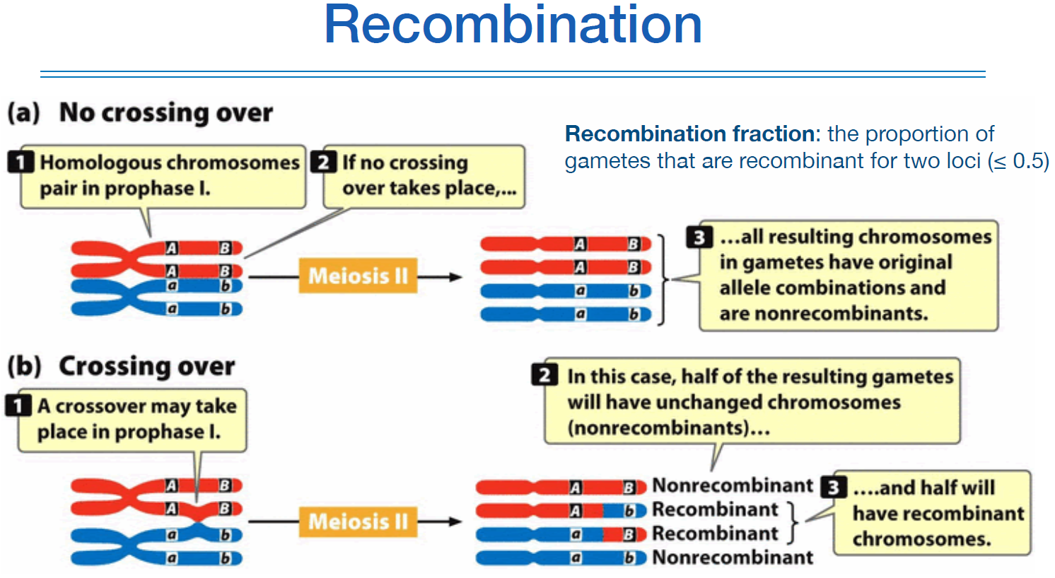 그래서 recombination fraction 또는 recombination rate는 50퍼센트가 최대이다.