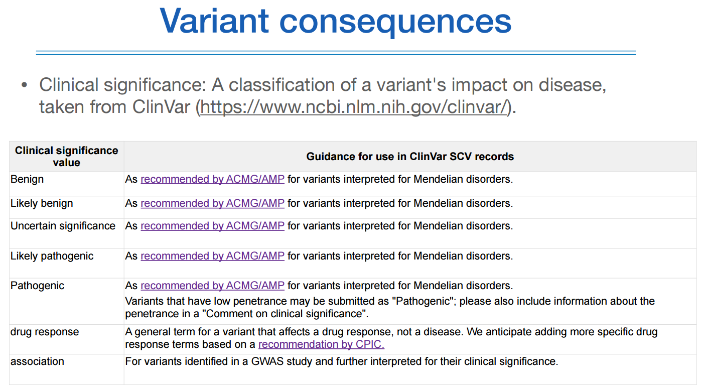 진단의학과에서는 이런 variant정보를 환자에게 보고를 해주어야하는데, 규칙이 필요하다.