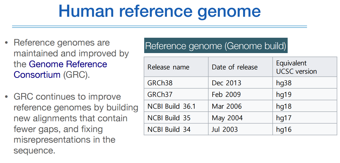 이 지놈 빌드가 중요한 이유는 레퍼런스가 업데이트 된다는 뜻이기 때문이다.