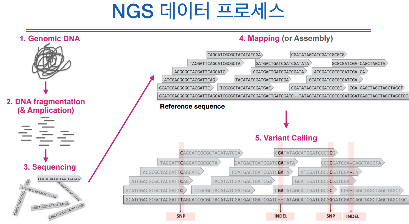 그리하여 이 NGS 데이터 프로세스라는 것 자체가 리시퀀싱, 맵핑과 관련된 설명이다.