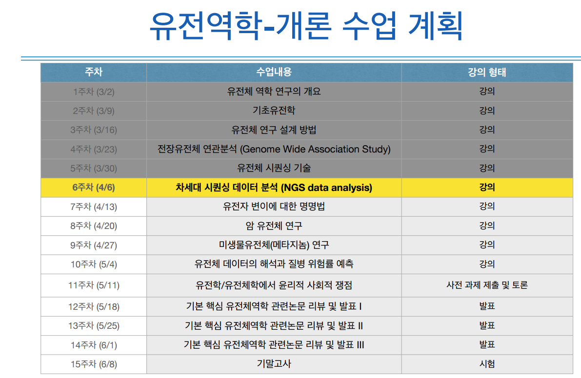 [medical] 유전역학-개론 6주차, 차세대 시퀀싱(NGS) 데이터 분석 본문