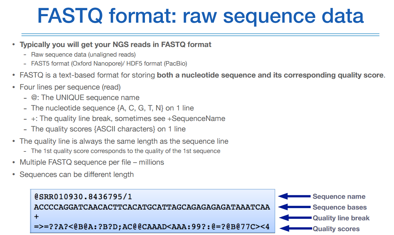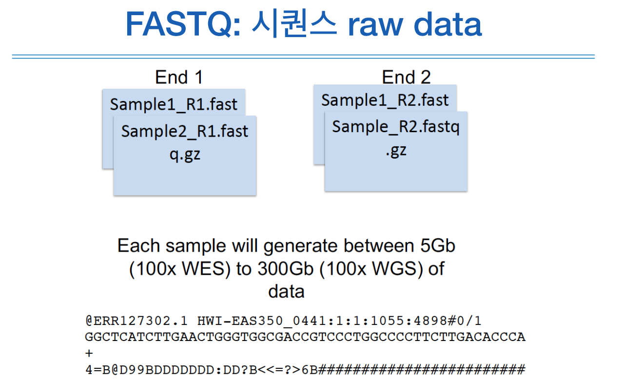 앞선 시간에 시퀀싱 기술에 대해 소개하였고, 그로부터 나온 결과물이 3번의 시퀀싱 로우 데이터이다.