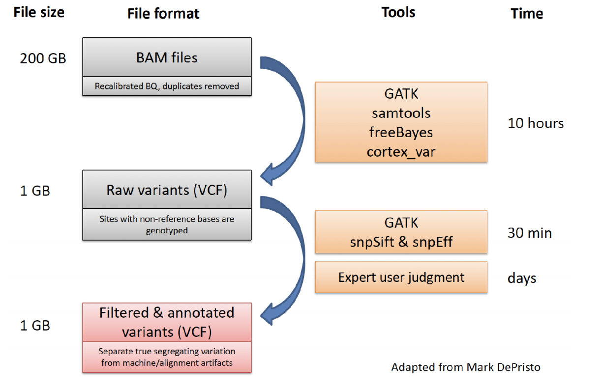 그럼 이제 우리는 레퍼런스와 다른 variant들을 찾아내어 VCF 파일을 가지고 있는 상태이다.