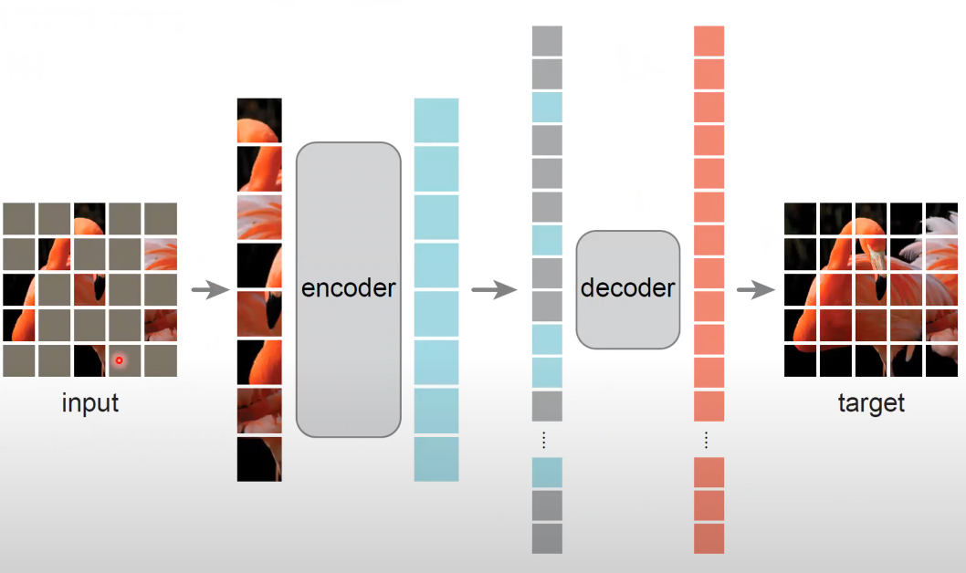 이미지를 패치로 나누고, 패치 중 일부를 가리고, 이를 에측하는 방향으로 학습이 됨.