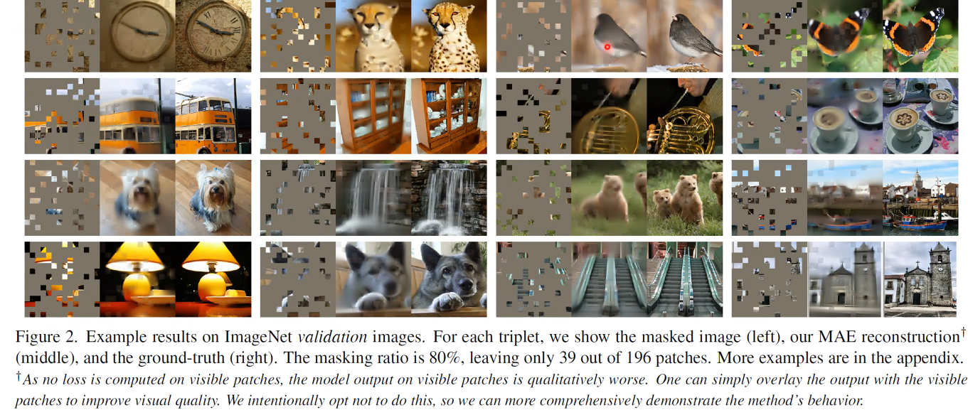 굉장히 많은 부분은 마스킹(75%)하기 때문에, 단순히 extrapolation 하는 것만으로 복원하는 것은 어려움. 때문에 어런식으로 학습이 된다면 좋은 representation을 학습할 수 있을 것이라 기대함.